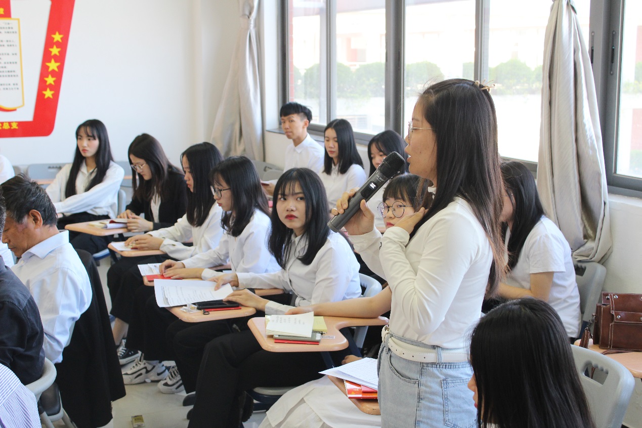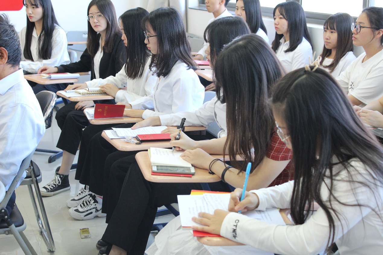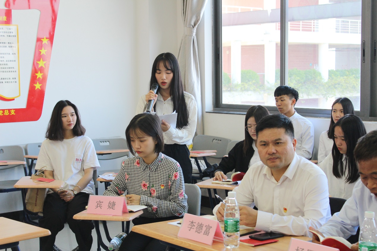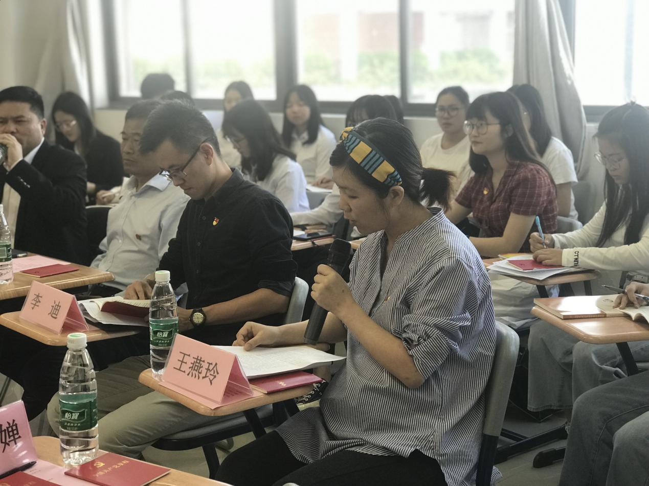 随后,学院学生第二党支部书记王燕玲分享了诵读党章后的心得体会。她表示,在工作和生活中要贯彻党员“吃苦在前,享受在后”的精神,日后将更加深入了解学生生活。三位学生代表也说出了自己阅读党章后的感悟,纷纷表示感谢党和国家给予他们美好和平的生活环境,感叹前人所作的努力和贡献,并期望自己能为祖国建设事业“添砖加瓦”。
