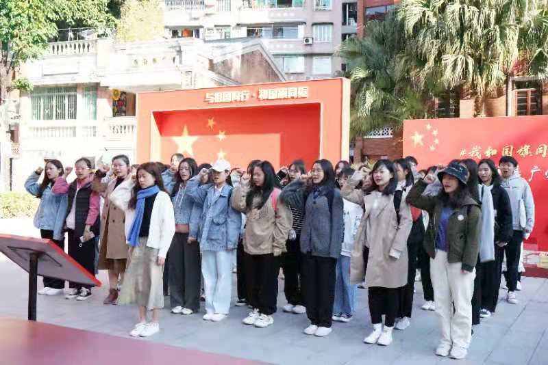 上午9时,在党员肖妮的领誓下,全体成员在中共三大会址遗址广场,面向党旗,宣读入党誓词。