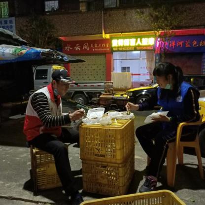 卢金培和其余志愿者一同吃晚餐