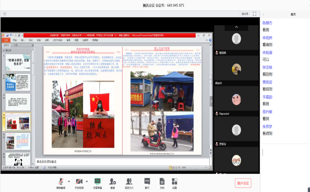 部分班级召开线上主题班会截图
