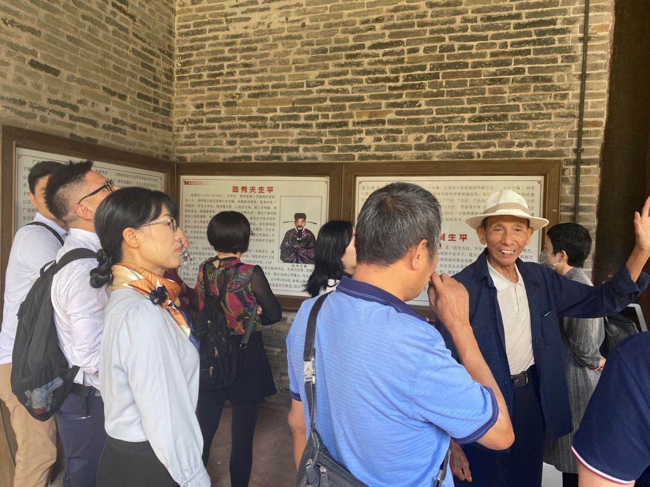 全体同志先后参观了古村最有名的红色资源——抗日自卫队指挥部旧址“兰集堂”和“广裕祠”。“广裕祠”的祠上门联为:“诗书开越,忠孝传家”,上联咏西汉名辩士陆贾说服南越王赵佗归汉,下联叹陆秀夫精忠报国的英勇大义。仅八字就高度概括一段汉民族生死存亡的历史和陆姓家族的丰功伟业。此外,“广裕祠”陆先生还为全体同志讲解抗日战争时期,陆姓村民发扬陆氏先祖的光荣传统,依仗熟悉本地情况的优势,保家卫国的历史故事。