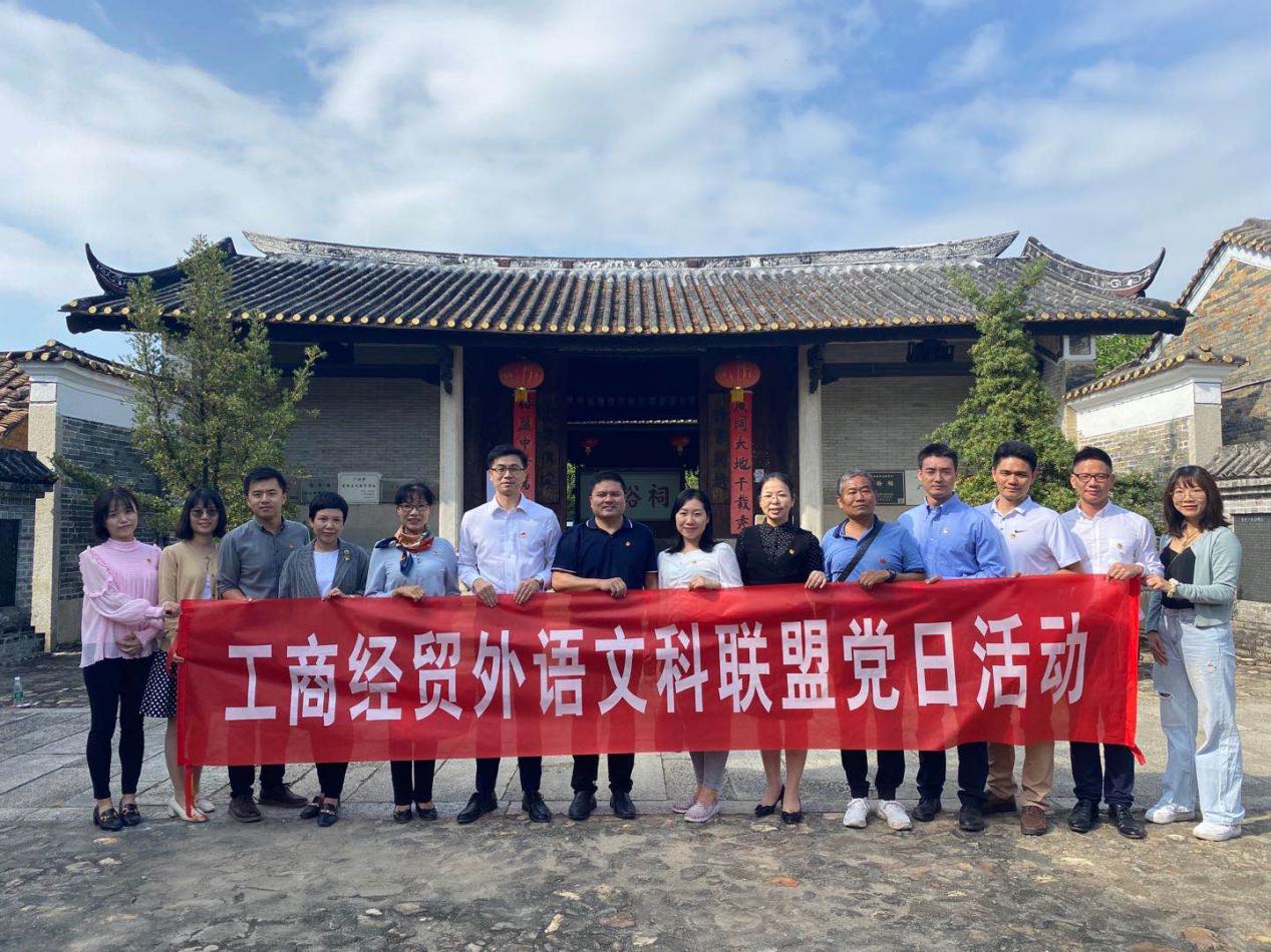 领略钱岗古村振兴风貌 感受党建创新风采。10月20日,由应用外语学院党总支牵头主办的工商经贸外语文科联盟党日活动在从化钱岗古村开展。工商管理学院党总支书记周清莲及支委谢宏祥、倪春丽,经济贸易学院党总支书记李繁及支委邱秀芳、龚云,应用外语学院党总支书记李德富及支委彭枚芳、罗春科、杨国民等相关同志一同参加本次党日活动,通过听取讲解、参观学习、与本地村民交流,实地感受党建工作在乡村振兴中的重要作用。