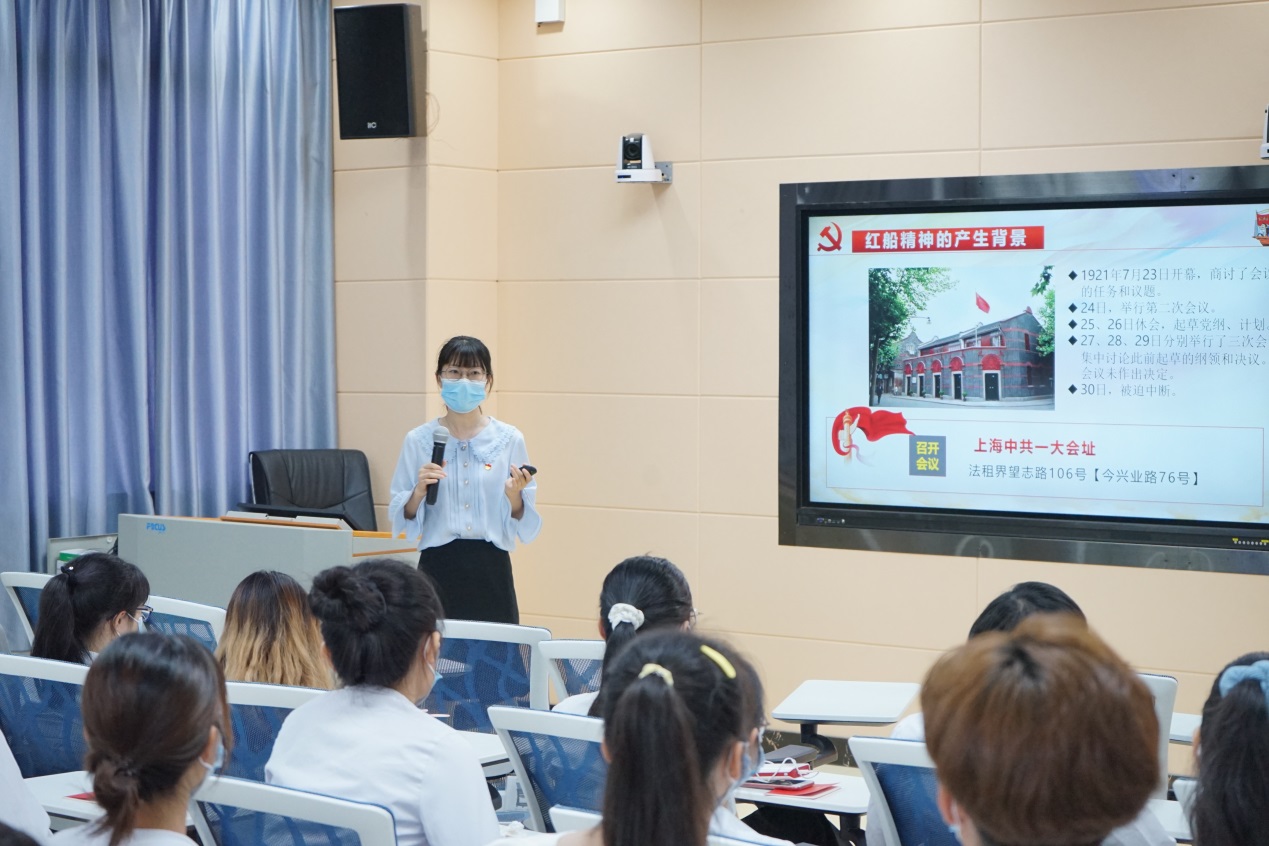 为贯彻落实习近平总书记在党史学习教育动员大会上的讲话精神,落实学校和学院党委关于党史学习教育的文件要求,6月10日下午3点,应用外语学院学生第一党支部书记陈晓玲以“弘扬红船精神,做时代新青年”为主题,在明德楼1-316为学院学生党员上了一堂生动的党课,与学生党员一起重温中共“一大”党史,追寻共产党人的初心和使命。