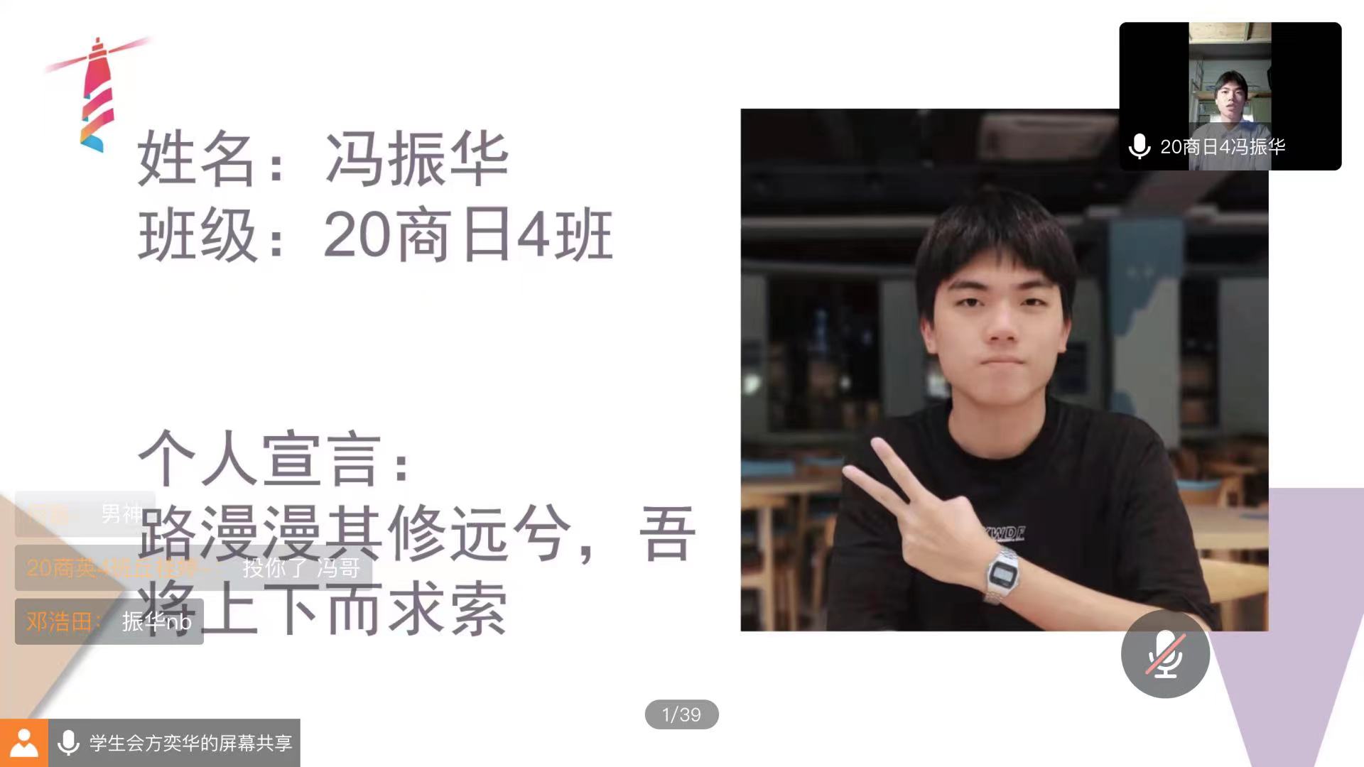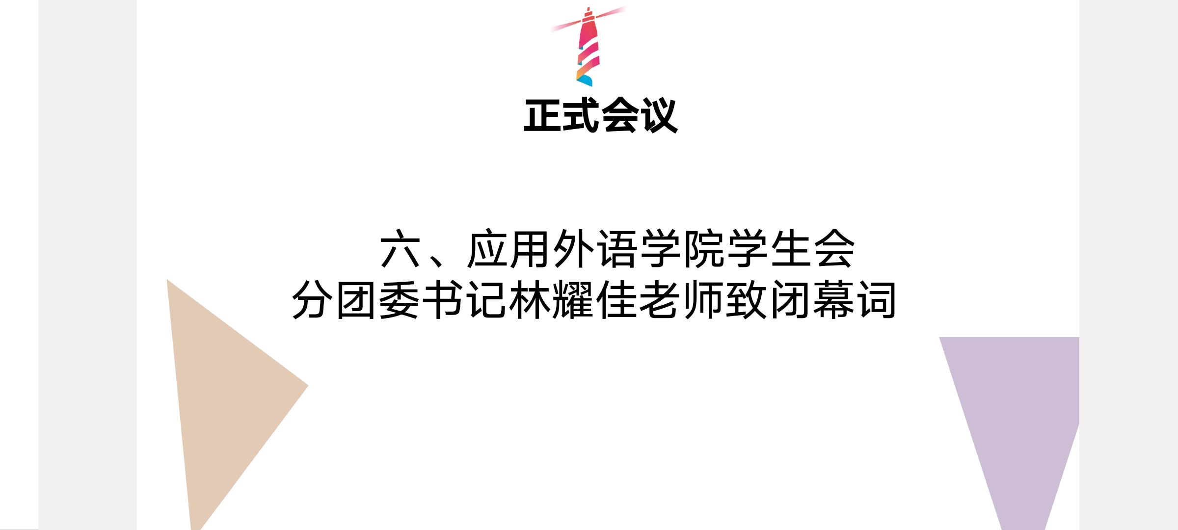 近日,应用外语学院迎来了第六届团员代表大会暨第十七届学生代表大会。此次大会以线上会议形式举行,参加大会的有应用外语学院团委学生会党总支副书记罗春科、分团委书记林耀佳老师、团委副书记雷艳芳、执行主席朱若芹、执行主席陈芊珂、团委办公室主任方奕华及候选者们。