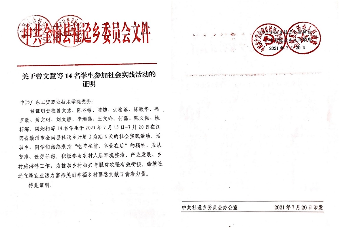 当地乡政府对“乡约二一”实践队的实践表现予以充分肯定
