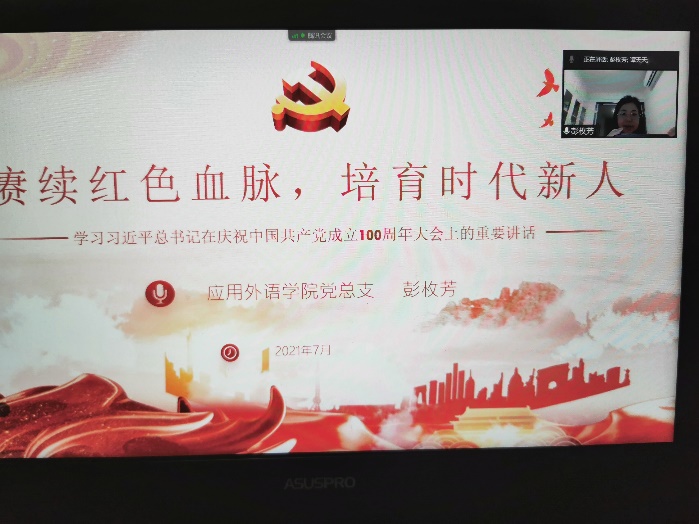 7月20日晚,第一次暑假集中学习如期在腾讯会议上举行。会议由支部书记彭枚芳主持。会议先后首、学习习近平总书记在庆祝中国共产党成立100周年大会上的重要讲话、习近平《论中国共产党历史》---讲好中国共产党的故事以及2020年6月27日给复旦大学青年师生党员回信。在回信中,习近平总书记指出:“一百年前,陈望道同志翻译了首个中文全译本《共产党宣言》,为引导大批有志之士树立共产主义远大理想、投身民族解放振兴事业发挥了重要作用。”他强调:“积极宣讲老校长陈望道同志追寻真理的故事,传播马克思主义理论,是一件很有意义的事情。希望你们坚持做下去、做得更好”,并多次提及“真理的味道非常甜”,陈望道翻译《共产党宣言》的故事等。