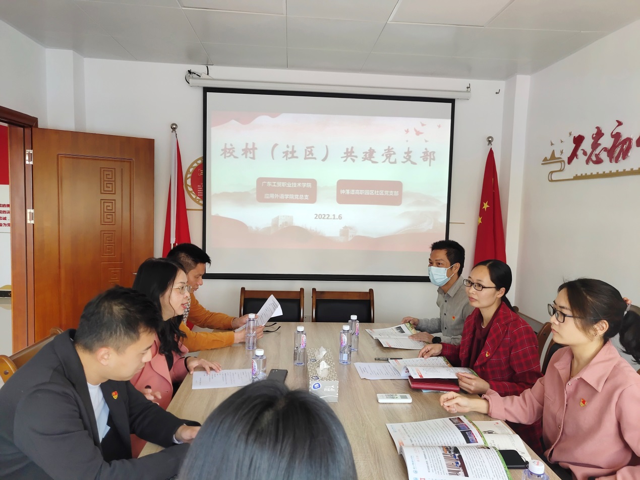 为深入开展“共驻共建”活动,积极推动外语学院与社区互联互动、共建共享工作,应用外语学院党总支与钟落潭高职园社区党支部几经沟通交流,决定搭建学院与社区之间党支部共建的交流平台,着力构建党建共建共享新格局,进一步巩固党史学习教育成果,加强“我为群众办实事”工作力度。