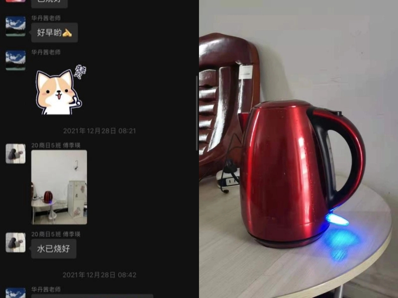 自党史学习教育开展以来,应用外语学院学生第一党支部把深化“我为群众办实事”实践活动摆在重要位置,在了解老师们“喝暖茶”的需求后,党支部书记陈晓玲从2019年初起,为外语学院老师们在6楼教师休息室启动“冬日送温暖,情意暖师心”服务活动。在寒冷的冬季,学生党员用“提前为老师烧好热水”这一小小行动带给老师们“一股暖流”,开启暖冬的美好时光。