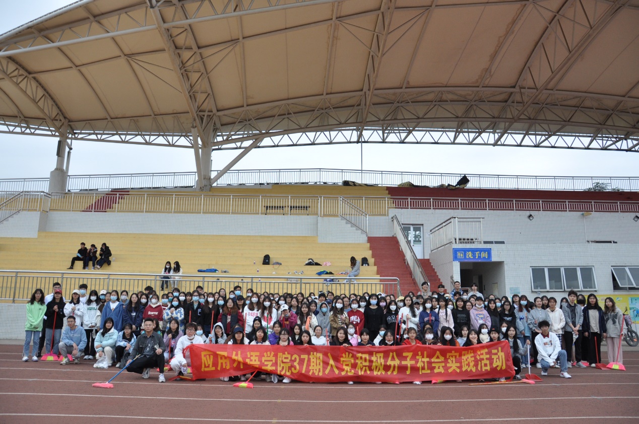 随着经济水平和消费水平的提高,购买物品时产生了大量包装垃圾,部分同学们在的环保意识渐渐淡化。食品包装袋,矿泉水瓶等生活垃圾随处乱扔的现象屡禁不止。学校操场每日都有很多人活动,但却不能每日都保持干净。不仅如此,观众席上也能随处看见塑料袋,包装纸,影响校园环境。为突出学院积极分子的先进性,增强积极分子意识,加强党性锻炼,明确社会责任感,时刻以党员的标准严格要求自己,提高学生热爱劳动、吃苦耐劳、义务服务的精神,菲律宾亚星222官网应用外语学院第37期入党积极分子于12月下旬在学校的操场组织了一场志愿服务类型的社会实践活动,活动共计186名积极分子参加,用时约2小时。