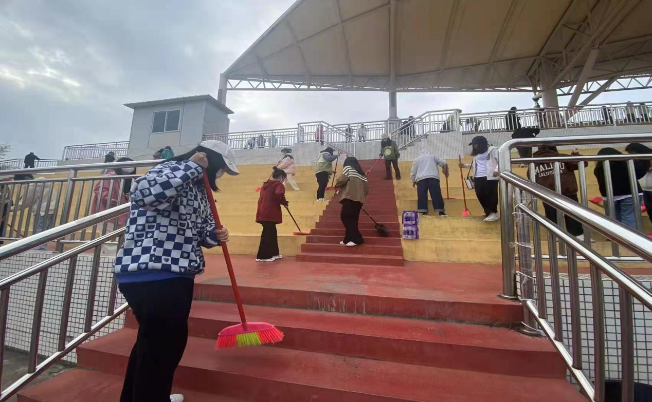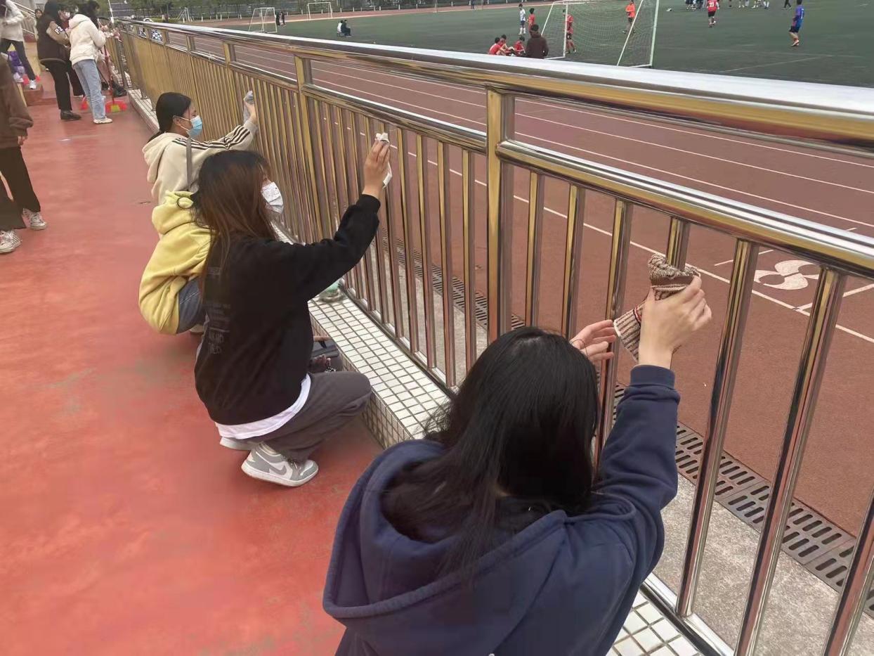 在经过积极分子们的努力,操场的主席台和观众席焕然一新,整体呈现出干净整洁的景象。在最后党课班长总结了本次活动,肯定了积极分子们对党组织的认可,并希望积极分子能够继续发光发热,团结同学,提升自身思想素养,早日成为发展对象。