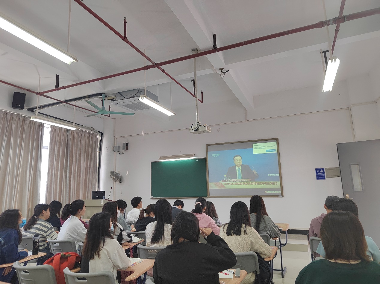 为深入学习两会精神,进一步提升学生党员的政治思想觉悟,3月11日上午,应用外语学院于明德楼1-610组织学生党支部全体学生党员收看两会记者会实况直播。