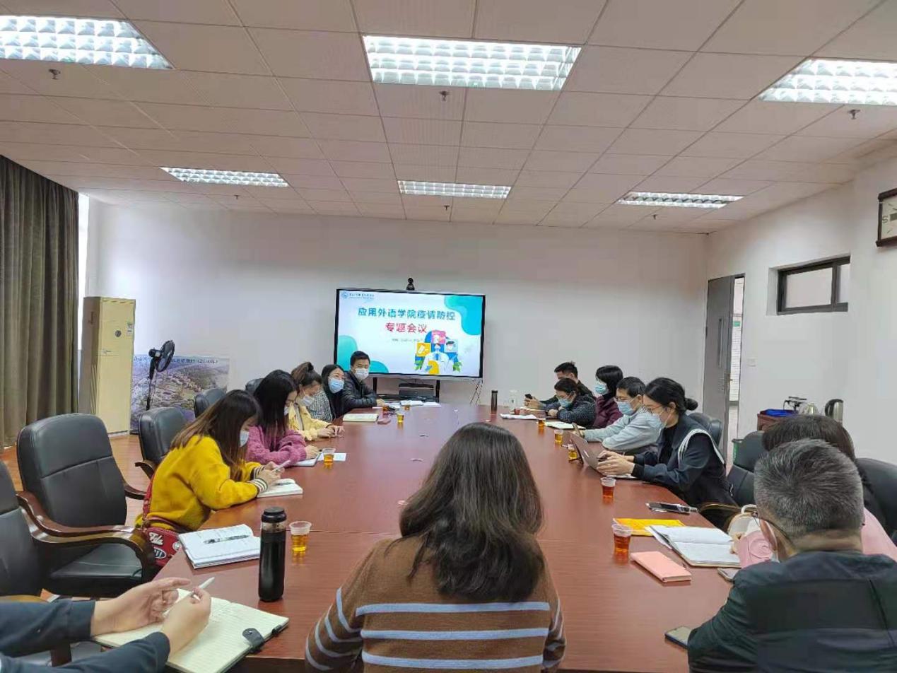 严格做好疫情防控工作,以实际行动迎接党的二十大胜利召开,3月28日下午,应用外语学院在明德楼1-308召开疫情防控专题会议,具体安排近期疫情防控工作。外语学院院长彭枚芳主持会议,学院党总支副书记罗春科、各支部负责人、学工办全体辅导员以及各系负责人参加会议。