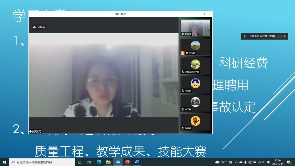 院长彭枚芳在兼职兼课教师制度培训线上视频会议中发表讲话