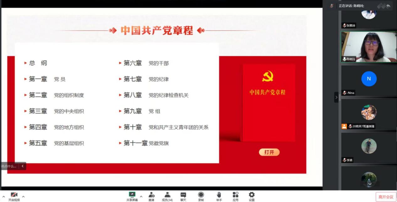 陈晓玲老师带领学习《中国共产党章程》