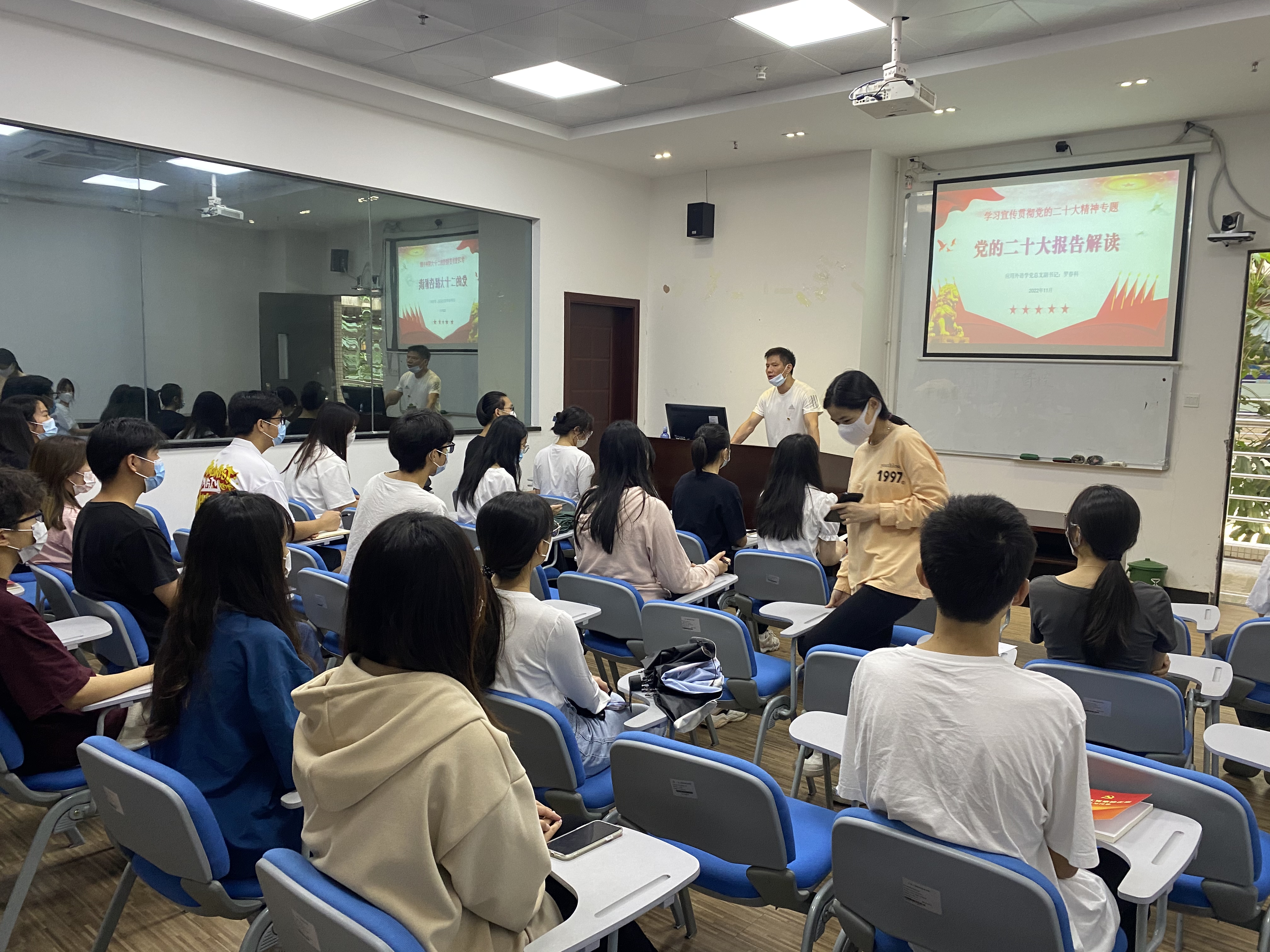 为引导广大青年学子深入学习领会党的二十大精神实质和丰富内涵,11月19日上午,应用外语学院党总支副书记罗春科在明德楼1-215给应用外语学院入党积极分子上了一堂精彩的党课:踔厉奋发,勇毅前行,争做新时代新征程的追梦人。