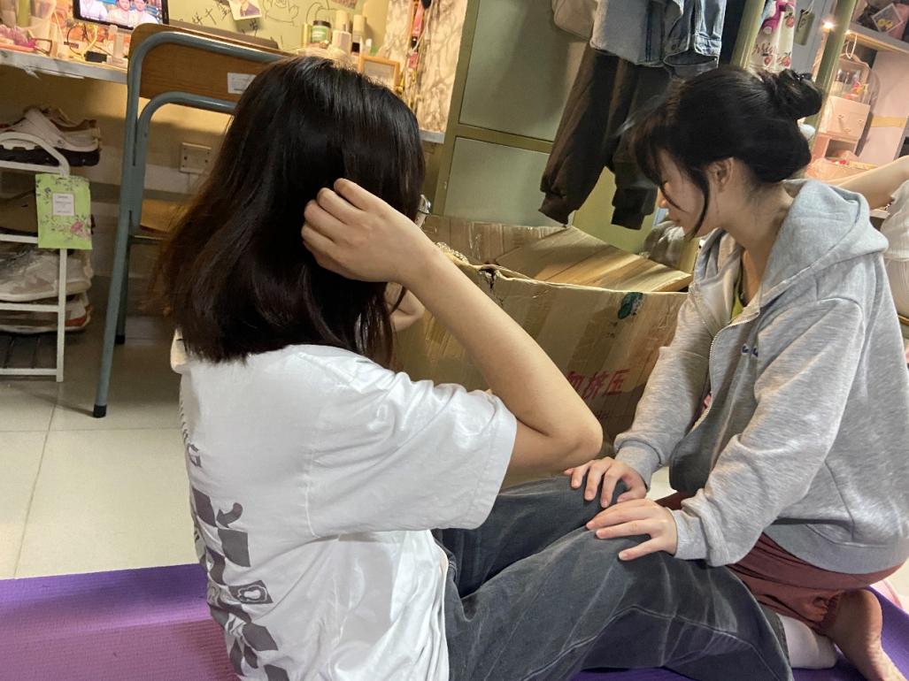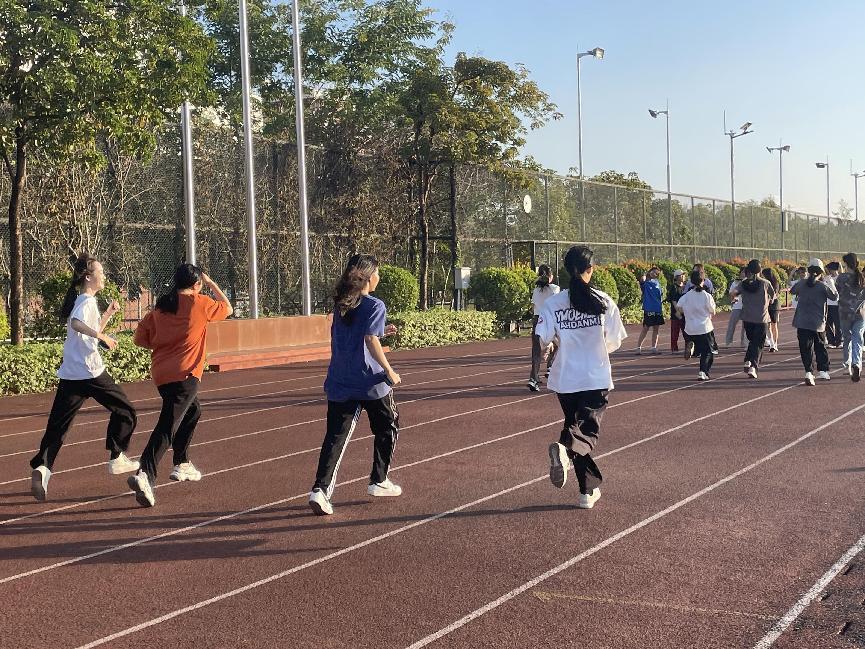 热身运动后,体育委员带领全班同学进行两圈慢跑和一圈快走,循序渐进的运动能让我们僵硬的肢体得到放松,更好地为后续的训练做准备。慢跑运动后,同学们进行拉伸运动,正确的拉伸运动可以充分拉伸身体的肌肉和韧带,有利于减少运动损伤,提高运动效果。50米冲刺跑也是体测的必备项目,同学们在努力训练的过程中,也逐渐体验到了自身的极限速度。除以上训练在操场进行,其他运动如仰卧起坐等在宿舍进行。每位同学以宿舍为单位,一分钟计时开始做仰卧起坐,舍友在旁计数,团队合作让体测训练不再枯燥乏味,而是充满着浓浓的同窗情谊。