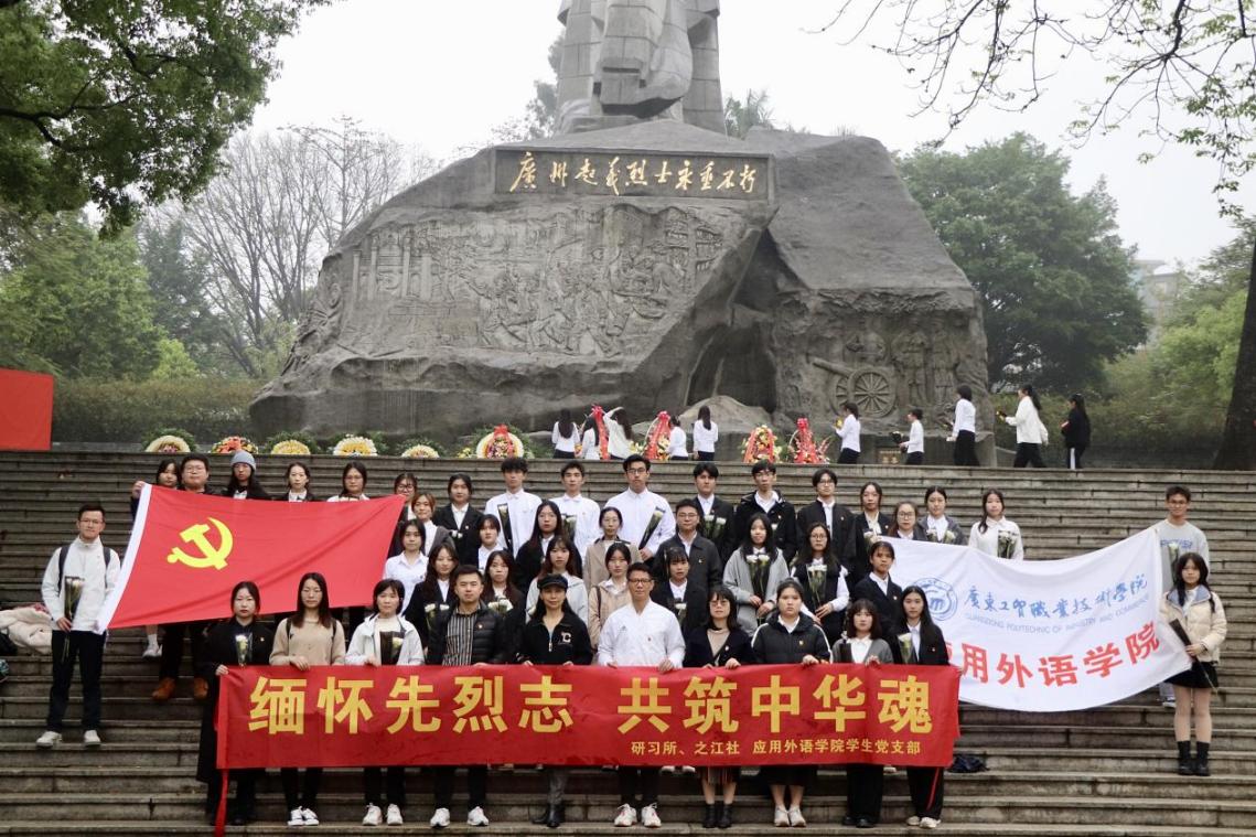 为深入学习贯彻习近平新时代中国特色社会主义思想和党的二十大精神,落实《新时代爱国主义教育实施纲要》,学习红色革命文化,重温血火交融历史,回望激情燃烧岁月,缅怀先辈英烈伟绩。暮春时节,踏着纷纷细雨,应用外语学院党总支部分教工党员、学生党员、入党积极分子、团干、优秀团员等一行来到广州起义烈士陵园,进行“缅怀先烈志,共筑中华魂”的红色革命文化教育主题党日活动。本次活动由应用外语学院党总支主办、党群服务中心、学院团委联合承办,学院师生46人参加了此次活动。