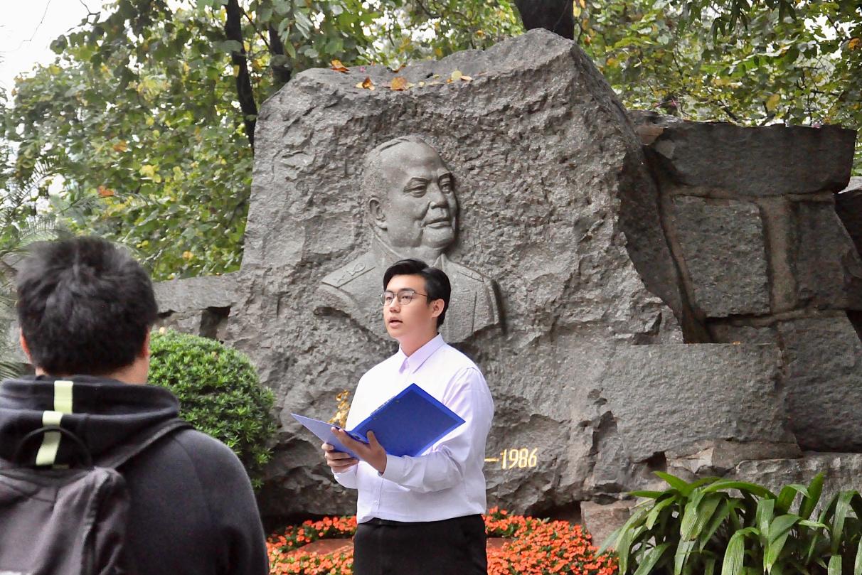 清明在即,缅怀英烈,学院全体人员在广州起义纪念碑前敬献鲜花、列队默哀、鞠躬致敬。学生代表周韦廷同学站在叶剑英元帅目前慷慨发言表示:“处在实现中华民族伟大复兴的关键时期,我们广大青年定将爱国情、报国志融入到中国特色社会主义现代化强国的建设中去!”