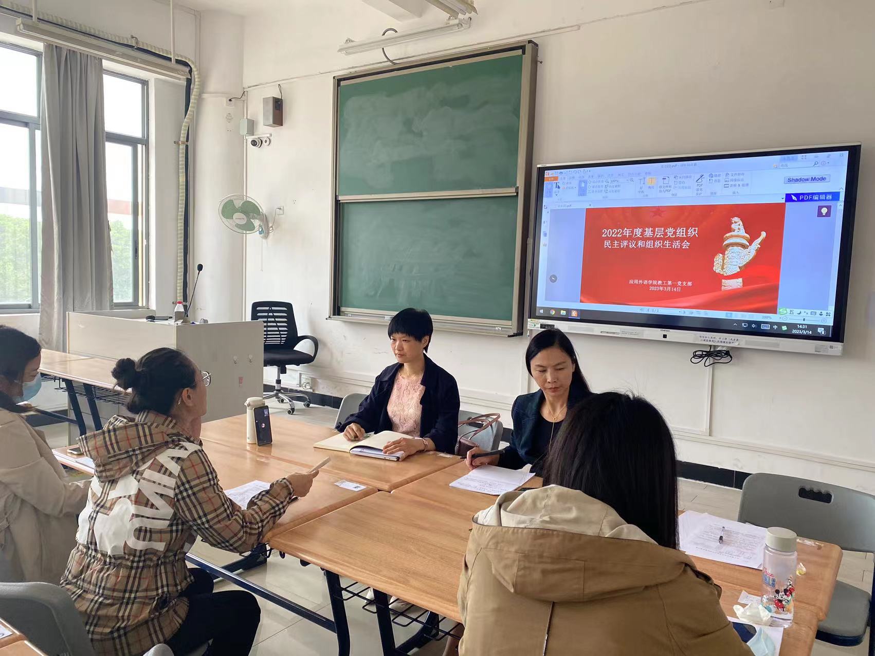 为深入学习贯彻党的二十大精神,进一步推进基层党支部建设,2023年3月14日下午14:00-16:00,在白云校区明德楼1区408室,应用外语学院教师第一党支部按照学校党委的部署安排以及学院党总支的要求召开组织生活会。会议由支部书记陈锦英主持,全体党员参加了本次会议。