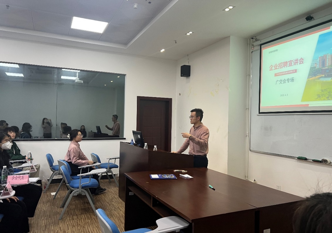 根据教育部办公厅关于开展2023届高校毕业生春季促就业攻坚行动的通知要求,应用外语学院坚持早谋划、早部署、早行动,抢抓工作关键期,积极开展访企拓岗专项行动。4月3日下午,应用外语学院邀请广州市谊百国际展览有限公司在明德楼2-203开展访企拓岗交流会。学院辅导员老师王燕玲、李迪、雷雨濛、刘镯梦,及部分20级毕业班同学参加了此次活动。