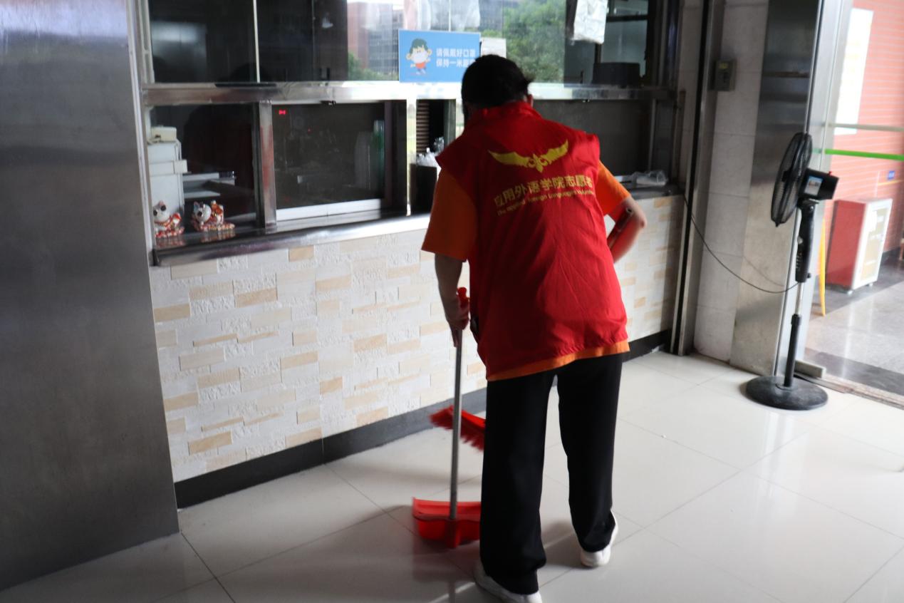 为深入贯彻落实习近平总书记系列重要讲话精神,全面贯彻党的教育方针,落实中共中央、国务院《关于全面加强新时代大中小学劳动教育的意见》全面落实立德树人根本任务,培养德智体美劳全面发展的社会主义建设者和接班人,响应学校环保月活动,培育劳动实践的成果, 4月22日下午3点应用外语学院青协分会组织志愿者开展以“春风如约至,扫除饭堂尘”为主题的义扫活动。