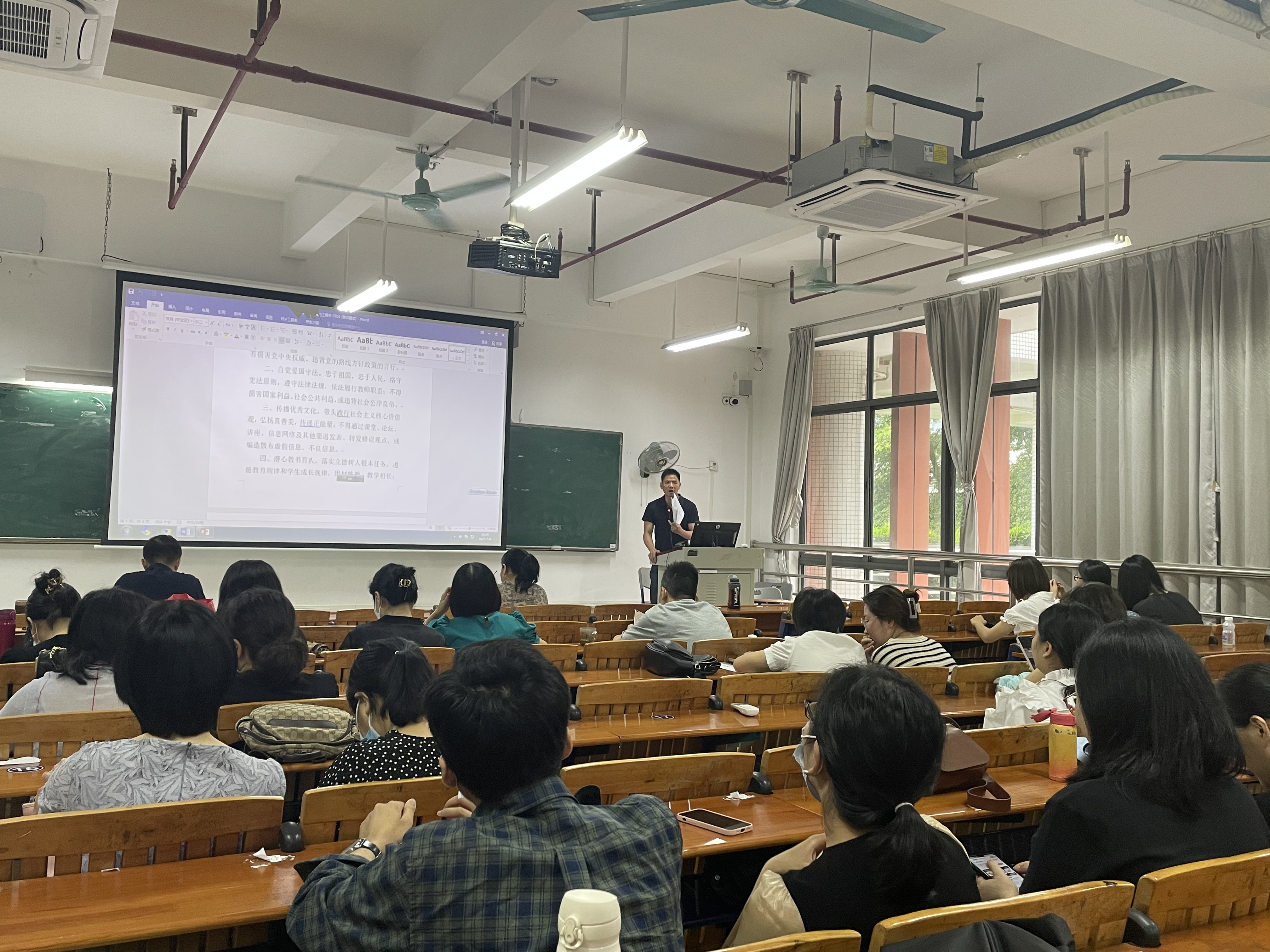 7月4日下午于白云校区明德楼2区204,应用外语学院党总支临时负责人罗春科召集开展学院全体党员会议暨党风廉政教育专题组织生活会,同时就本学期的党建工作做总结及新学年工作做出部署。应用外语学院全体教工党员参加了本次学习。