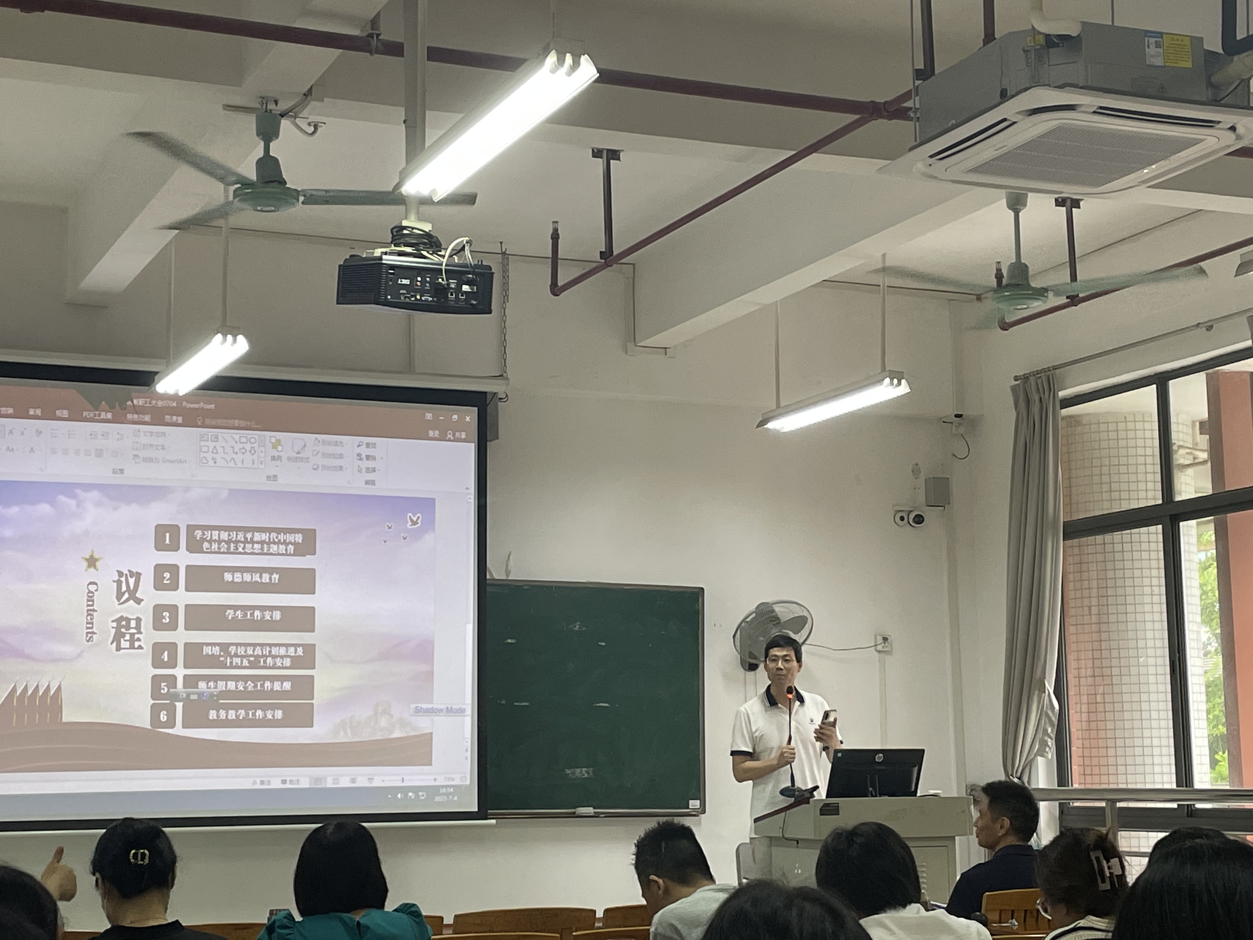 为深入学习习近平总书记关于教师队伍建设的重要指示批示精神,贯彻落实《教育部关于在教育系统开展师德集中学习教育的通知》,2023年7月4日下午,应用外语学院开展全体教师会议暨师德集中学习教育。学院党总支临时负责人罗春科主持会议,全院教职员工参加了本次大会。