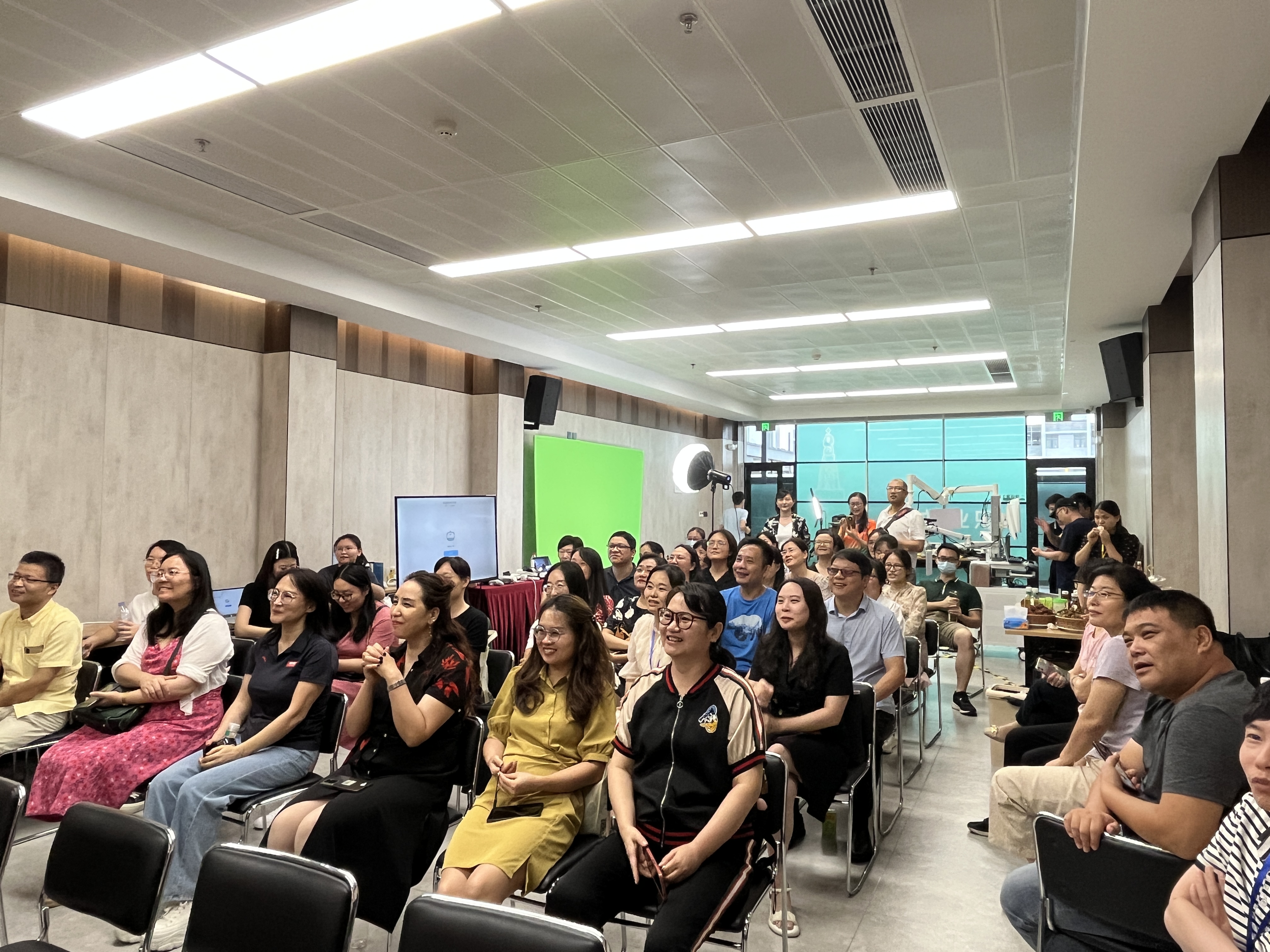 本次实操设备由广州卡瑞欧教育科技有限公司提供,学员们亲身体验了现实世界中难以实现的“实操”机会,学习了VR虚仿、智能AI等前沿技术,还从学员角度体验了利用高科技设备担当跨境电商主播的全过程和PC、VR头盔等多端设备全面融入场景的学习情境。实操现场,学员们不时发出惊叹声和欢笑声。