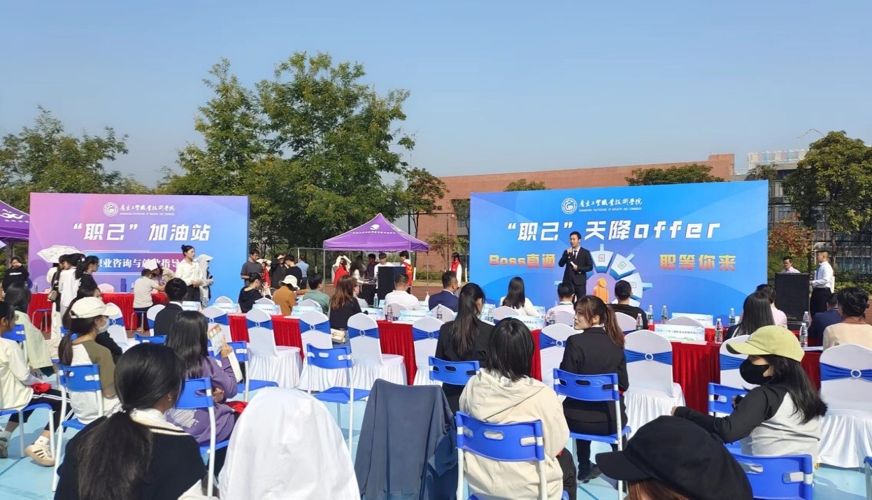 “南方先进制造业”专场招聘会特设“职己”专区,由应用外语学院承办,依托省级“职己”特色生涯工作室,致力打造职业规划与就业指导一站式服务,实现毕业生与用人单位“双向奔赴”,受到省厅领导、各兄弟院校和企业的高度赞扬。本次“职己”专区分为三个部分。1.“职己”加油站火力全开,提供职业咨询与就业指导,20余名全球职业规划师线上线下提供一对一咨询服务,实现毕业生求职“奥利给”;2.“职己”天降“offer”-Boss直通现场精彩纷呈,毕业生现场击鼓打擂求职,30家企业老总现身说法,提供800+个岗位,覆盖各行业,现场直接给offer,助力毕业生高质量更充分就业;“职己”打气筒打气鼓劲,8位专家和法律顾问讲师团一对一提供就业法律咨询和权益保障,为毕业生全方位保驾护航。