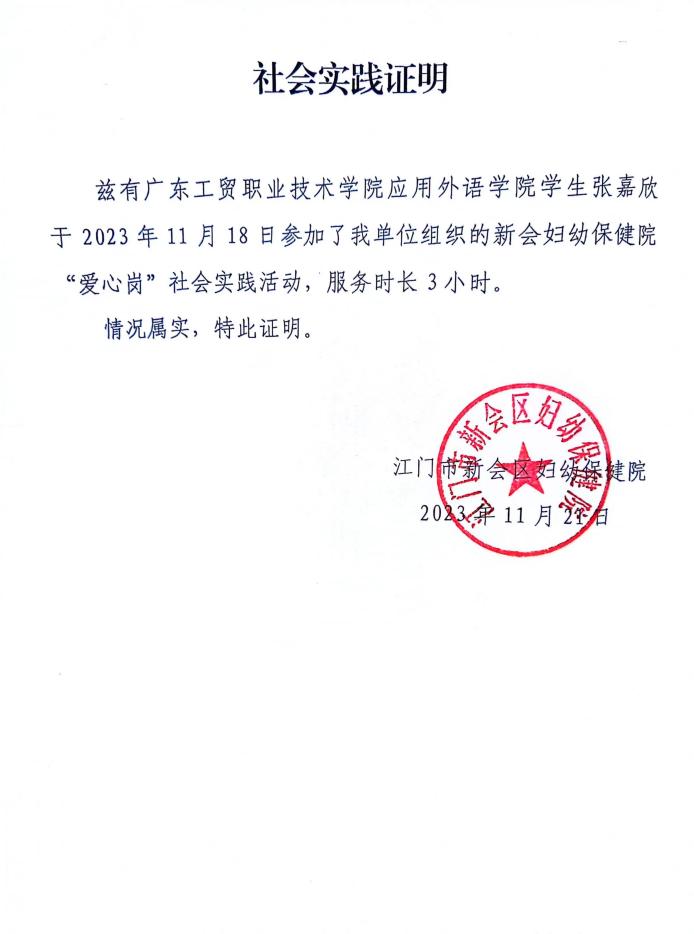 张嘉欣同学开展校外社会实践活动