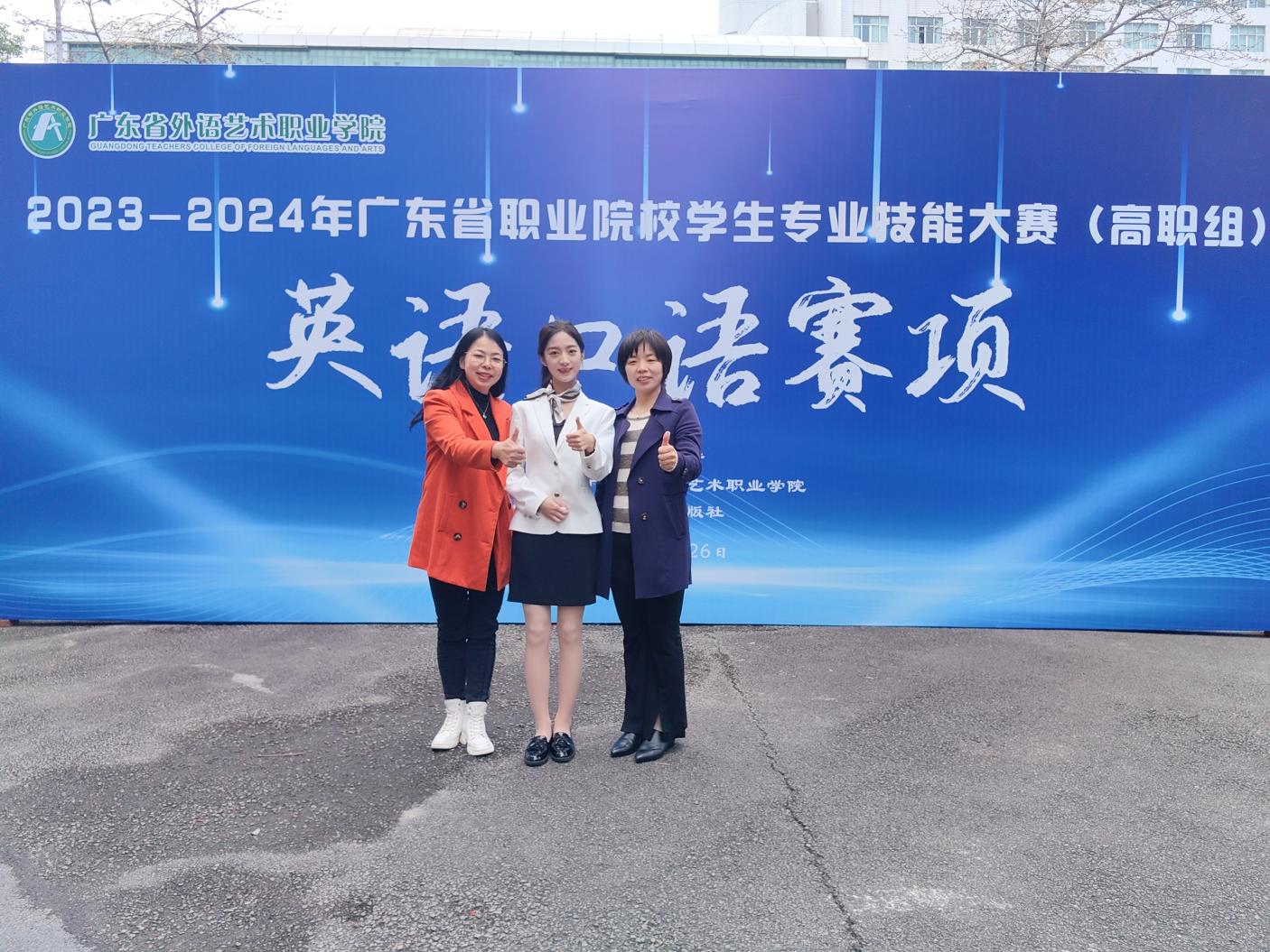 2024年2月25日至26日,2023-2024年度广东省职业院校学生专业技能大赛(高职组)英语口语赛项在广东省外语艺术职业学院成功举办。本届大赛首次采用师生同赛的形式,来自全省86个学校的选手参加了此次角逐。应用外语学院23商务英语1班张希欣同学代表学院参加了本次大赛,我院雷莹老师作为指导老师一同参赛。