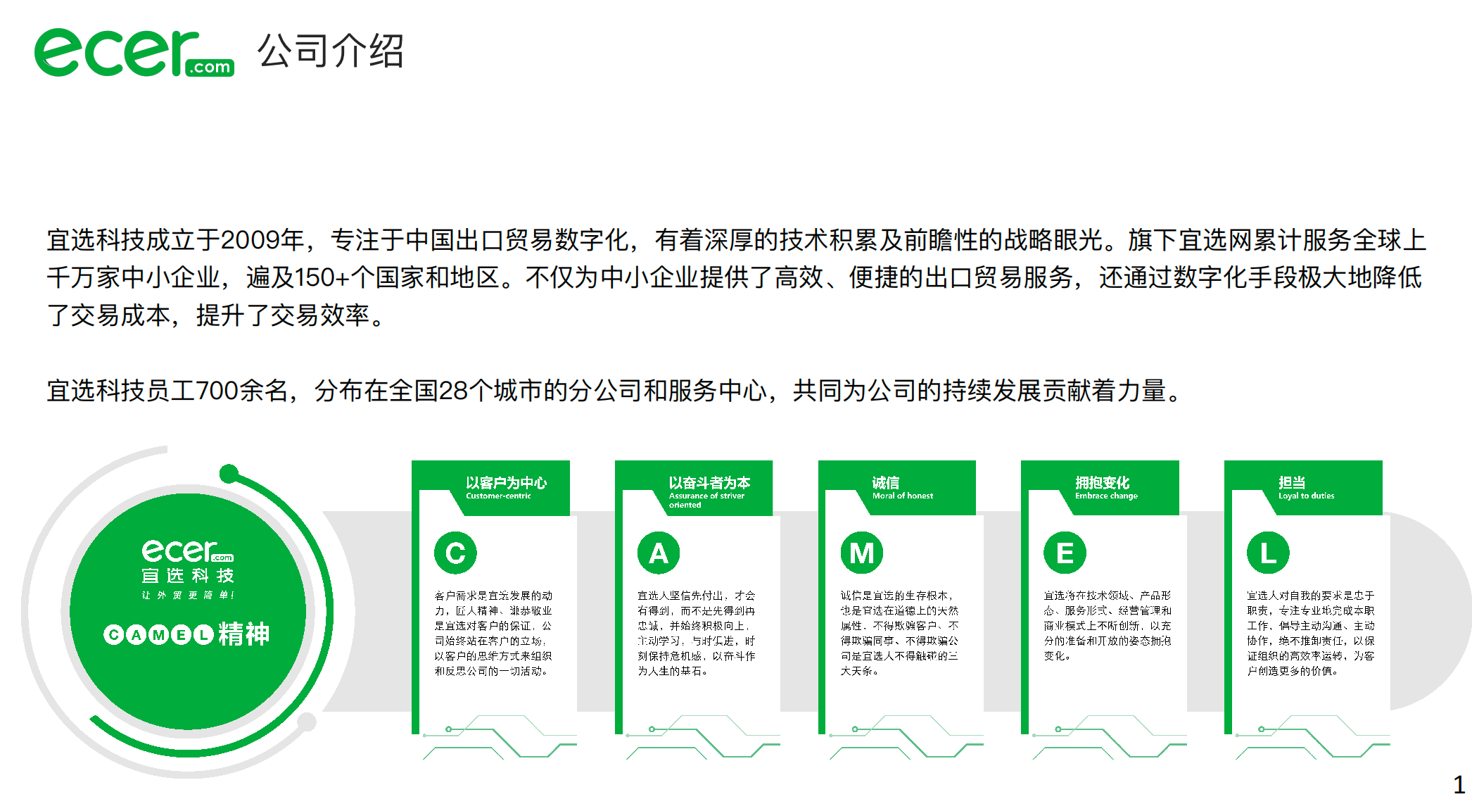 1、负责宜选科技旗下宜选网(ecer.com)的客户拓展工作。主要采用电话沟通、在线联系等方式,在公司提供的资源中寻找目标客户,针对目标客户进行业务拓展;