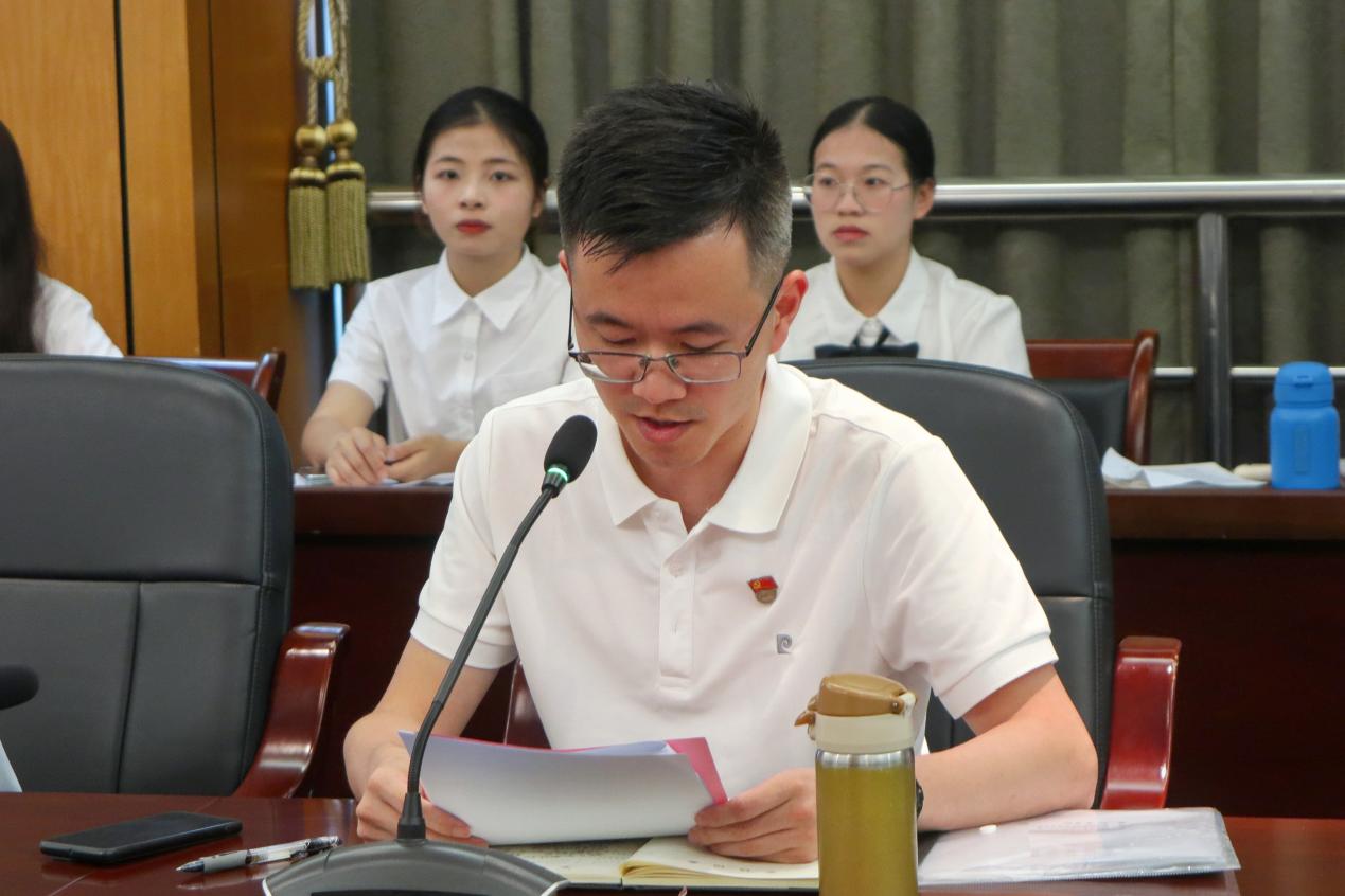 外语学院两个学生支部发展对象分别进行自我介绍和宣读入党志愿书,通过宣读入党志愿书向参会的党员同志阐述了自己的入党动机和入党后的未来发展规划。随后,所有正式党员进行了讨论和审议,对他们的政治思想觉悟、入党动机及个人现实表现表示肯定。经过参会的所有正式党员无记名投票表决,所投赞成票总数超过到会有表决权的正式党员的三分之二,符合相关条例规定,致同意接收钟文杰等21名同志为中共预备党员。