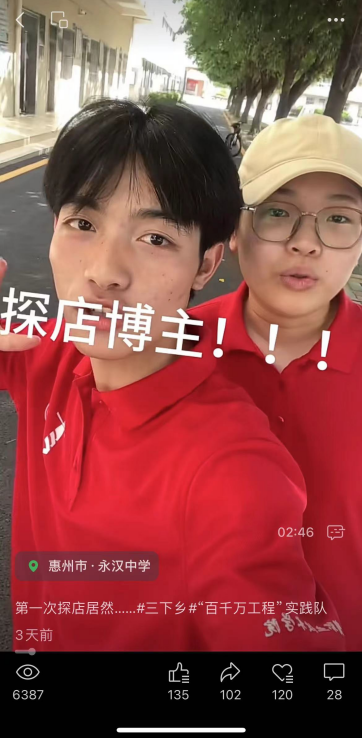 视频组的镜头下,精心编排的舞蹈小视频,如同精灵在永汉镇的每一个角落轻盈跳跃,用艺术的语言诉说着永汉的独特韵味。每一帧画面都洋溢着青春的活力与对美好生活的无限向往。而探店Vlog如同一位贴心的向导,引领着观众穿梭于永汉的街头巷尾,探寻那些隐藏于市井之中的美食珍馐与特色小店。视频组以独特的视角和细腻的情感,记录下每一次味蕾的惊喜。这些生动有趣的vlog,展现了永汉丰富的旅游资源与深厚的文化底蕴。