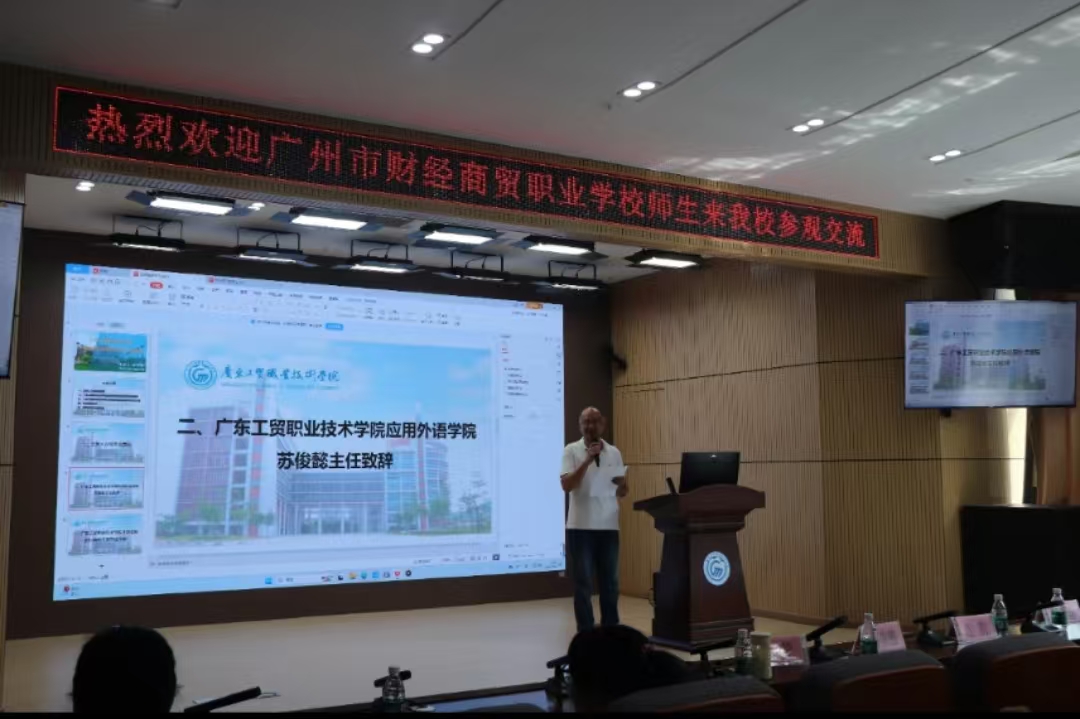 9月27日,应用外语学院在白云校区博学楼报告厅举办了交流座谈会。应用外语学院英语系主任苏俊懿、广州市财经商贸职业学校涉外贸易系主任江韵、应用外语学院商务日语专业带头人雷莹、王艳、陈歆馨、广州市财经商贸职业学校商务日语专业带头人易娟娟、刘可、孙小燕,以及广州市财经商贸职业学校学生参加本次现场交流。本次座谈会由苏俊懿主持。