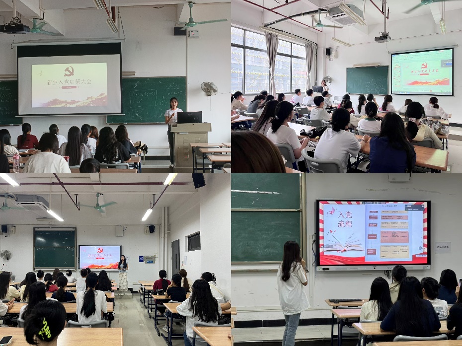 为持续深入学习贯彻党的二十届三中全会精神,进一步帮助和引导2024级新生学习党的基本理论、提高理论素养、了解入党流程、端正入党动机,应用外语学院学生第一党支部全体学生党员于20249月深入2024级商务英语专业10个新生班级团支部分别开展入党启蒙教育。
