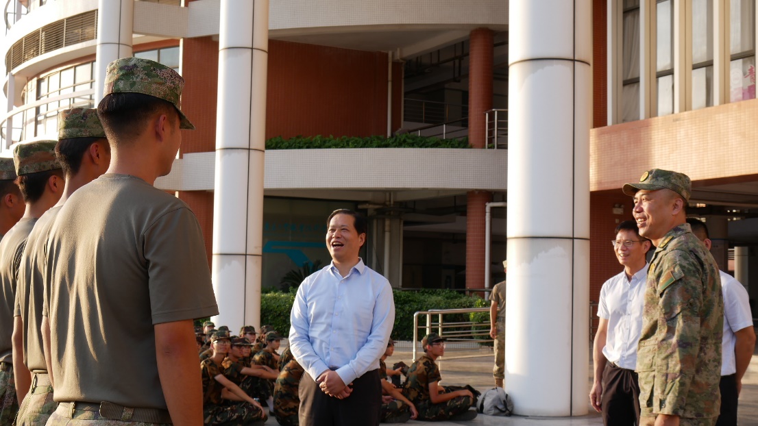 走访中,何汉武与承训官兵进行了细致的沟通,全面了解新生军训的整体进展、训练成效及存在的困难与挑战。何汉武对承训官兵的辛勤付出表达了诚挚的谢意,并高度赞扬了他们严谨的训练态度和专业的指导能力。