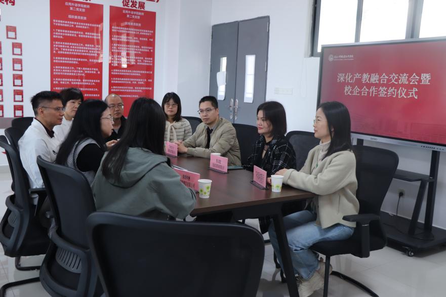 为深入贯彻习近平总书记关于高校毕业生就业工作的重要指示批示精神,有效驱动校企之间的互联互通、信息共享与业务协同,助力我院2025届毕业生高质量充分就业。1129上午,应用外语学院在行知楼611举行了深化产教融合交流会暨校企合作签约仪式。本次交流会参加企业有5家,提供岗位100余个,应用外语学院党总支书记罗春科,院长彭枚芳,副院长胡红玲,出席本次交流会。会议由彭枚芳主持。