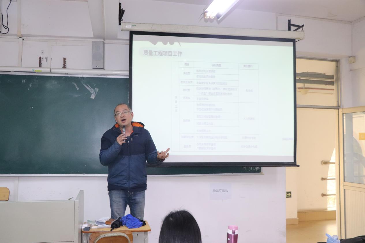 苏俊懿副院长介绍了个人分管工作情况,主要包括质量工程项目工作、竞赛工作和继续教育培训工作。接着,从质量工程成果和师生竞赛成果两方面对 2024 年的成果进行了总结。他表示,在 2025 年将为质量工程和各类比赛全面提供信息、资源与技术支持;通过优化工作流程,提高服务质量;努力将学院目标与教师个人目标紧密结合起来。