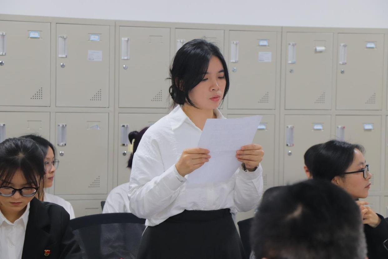 会议伊始,学生党员梁曦文同志领学习近平总书记在中共中央政治局第十九次集体学习时的讲话精神,指出建设更高水平平安中国意义重大,要贯彻总体国家安全观,在多方面持续用力。她表示:作为党员和新时代青年,应履行义务、营造积极心态、加强学习实践,为建设平安中国出力。随后,学生党员黄铠华、詹玉瑾同志就“第一议题”领学内容作交流发言。