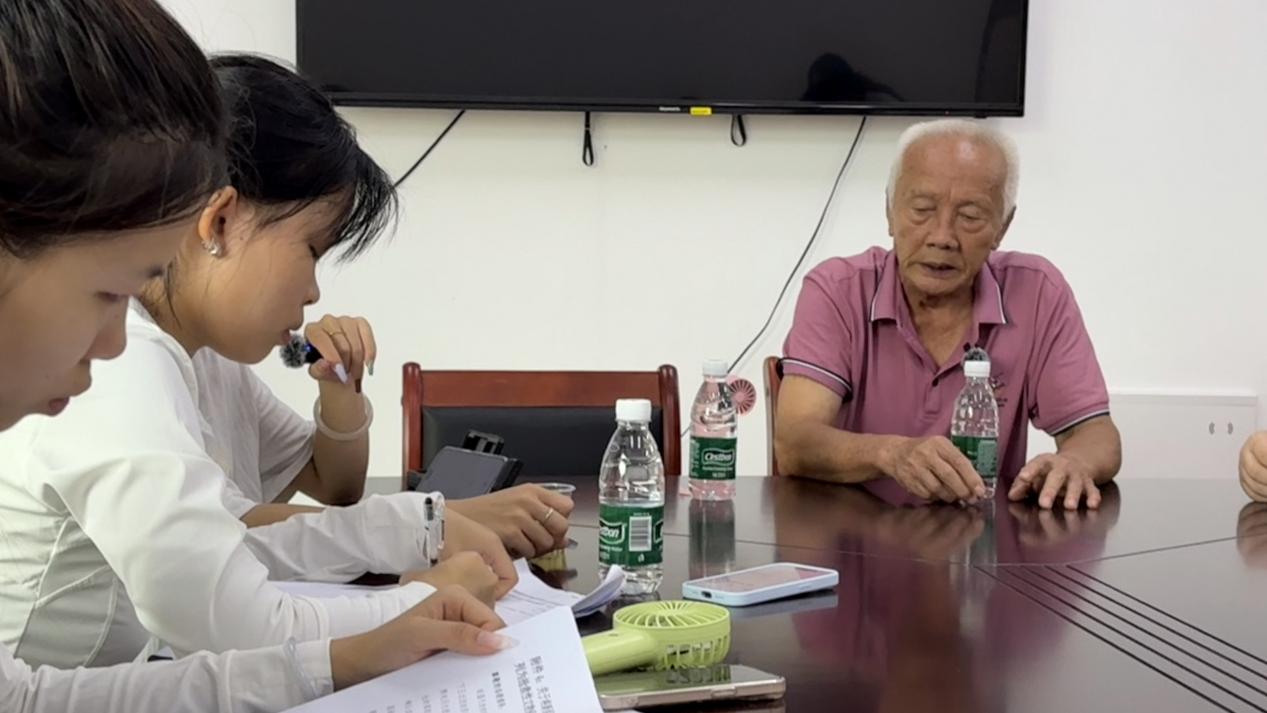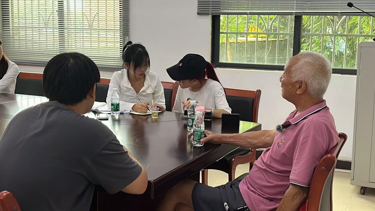 当日清晨,突击队队员抵达寮田村新屋吓村委会会议室。经村长牵线,队员们见到了革命先辈王达宏的侄子王史成老先生。老先生特意带来精心整理的珍贵史料,言语间满是对此次访谈的支持,友好热烈的氛围为红色探寻打下了坚实基础。
