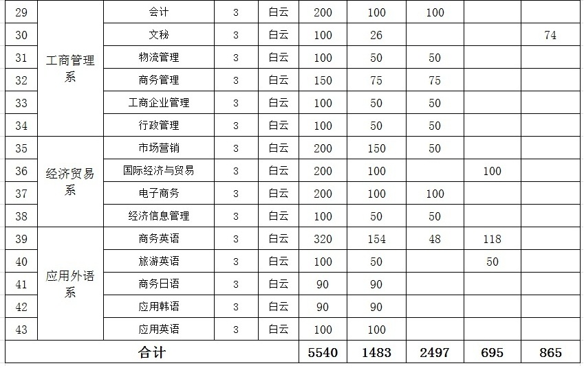 2.住宿费为1000―1800元/学年;学费:会计、文秘、物流管理、商务管理、工商企业管理、行政管理、汽车营销与服务、市场营销、国际经济与贸易、电子商务、经济信息管理和外语类专业为5250元/学年,数字媒体艺术设计为10000元/学年;其余专业为6410元/学年。