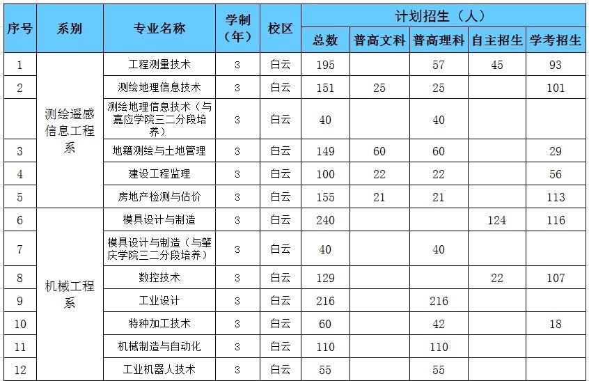 备注:1.各专业名称及招生人数以广东省教育考试院公布的《招生专业目录》为准;自主招生、学考招生计划已完成。