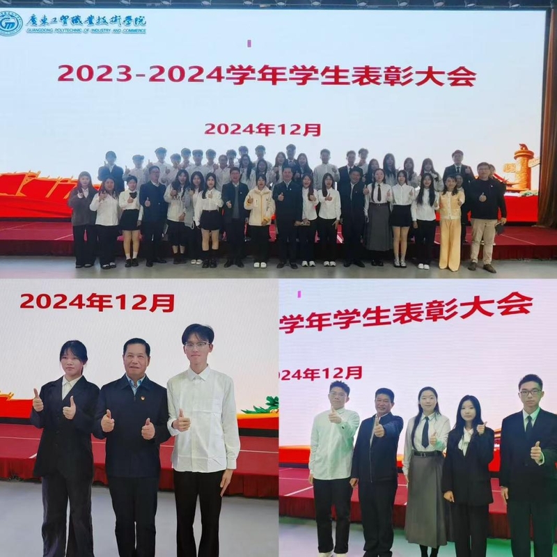 对标榜样明方向,振奋精神勇担当。2024年12月19日,学校2023-2024学年学生表彰大会在白云校区学生活动中心四楼报告厅隆重举行,学校党委书记何汉武,党委委员、副校长唐毓秋,党委委员、副校长徐勇军以及党政办公室、组织宣传统战部、教务部、学生工作部、各二级学院党总支负责人以及师生代表约400余人参加了大会。