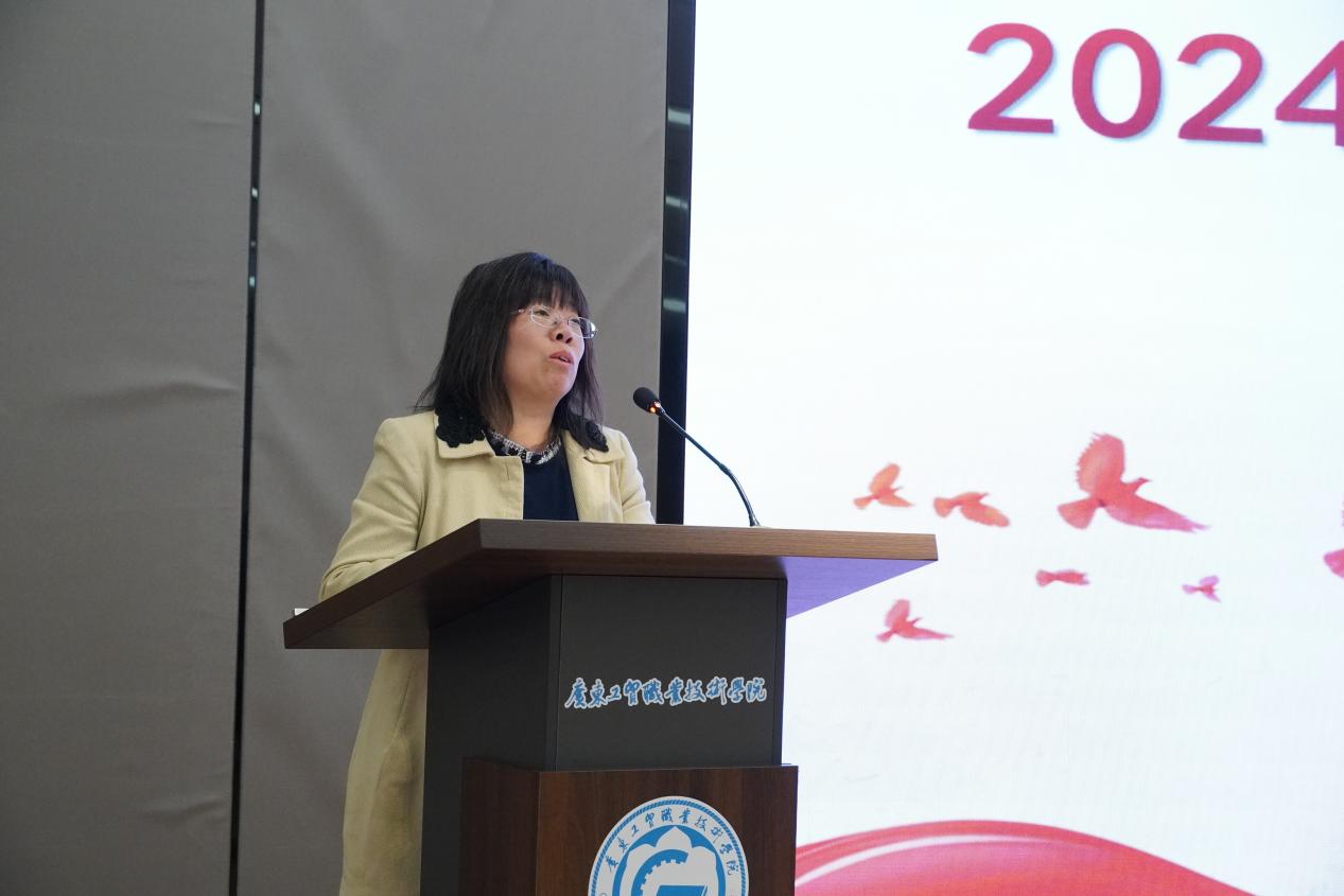 在评委点评环节,马克思主义学院刘凤梅院长对辅导员队伍的精神面貌和实力水平表示了充分肯定,并对本次大赛分别从选手个人阐述和答辩环节进行了点评。她指出,高校辅导员肩负着“立德树人”的重任。在此次比赛中,选手们紧密围绕九大职责,清晰阐述核心竞争力,同时将最新的思想政治理论融入工作实践,彰显思想引领力,实现了理论与实践的紧密结合。她还鼓励辅导员们将工作经验凝练成特色品牌,展现工贸风采,以期在对外比赛中更具竞争力,为我校思政工作的持续进步贡献力量。