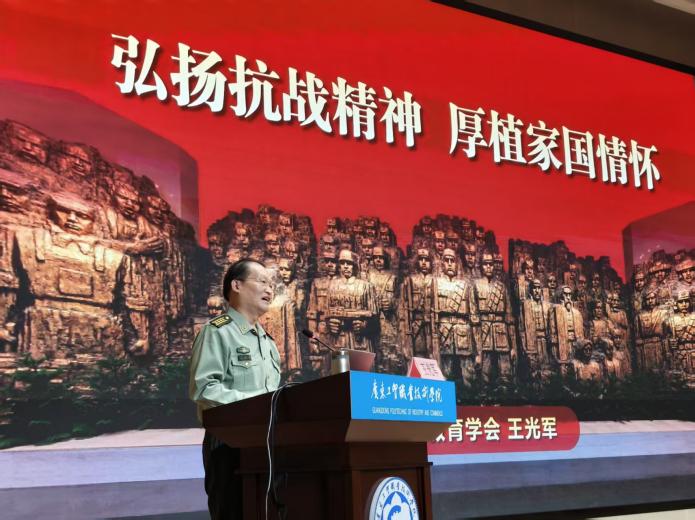 本期“工贸大讲堂”特邀广东省国防教育学会副会长兼秘书长王光军大校作《弘扬抗战精神,厚植家国情怀》专题讲座。王光军大校围绕抗战精神的历史渊源、时代价值与实践传承三个层面,结合丰富史料与生动案例,系统阐释了抗战精神的深刻内涵。他指出,抗战精神是中华民族宝贵的精神财富,是激励我们砥砺前行、奋发有为的强大动力,呼吁青年学子挺膺担当,将“小我”融入“大我”,把热血青春挥洒在强国强军的伟大征程上。现场师生深受感染,从先辈事迹中深刻体悟到“强国必须强军,军强才能国安”的厚重内涵,将使命担当内化于心。讲座结束后,学校党委委员、副校长唐毓秋代表学校向王光军副会长赠送“工贸大讲堂”纪念牌。