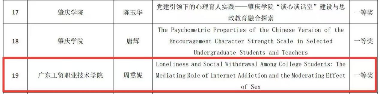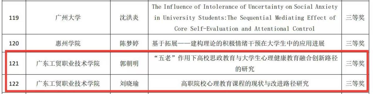 会议对高校心理健康领域取得成就的集体和个人进行了表彰。我校荣获“2024-2025年度广东省高校心理健康教育与咨询工作先进集体”称号,1位教师获“2024-2025年度广东省高校心理健康教育与咨询工作先进个人”称号,1位教师获“2024-2025年度广东省高校心理健康教育与咨询工作优秀论文”一等奖,2位教师获二等奖,2位教师获三等奖。