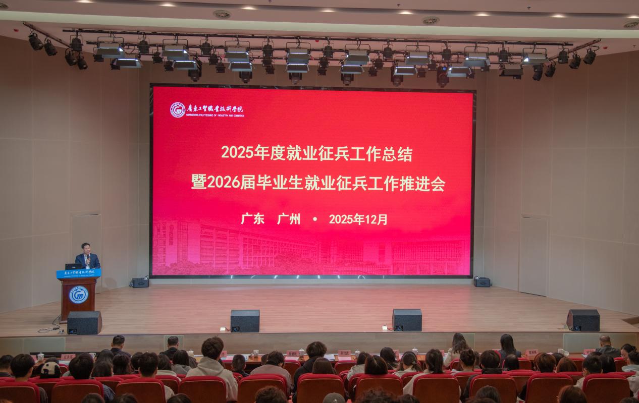 学校2025年毕业生就业及征兵工作总结暨2026届毕业生就业及征兵工作推进会于12月30日在白云校区博学楼一楼学术报告厅顺利召开。学校党委书记何汉武,党委委员、副校长唐毓秋,党委委员、副校长徐勇军出席会议,学生工作部、教务部、科学技术部、对外交流合作部、团委等相关职能部门负责人以及各二级学院党总支书记、院长、党总支副书记、全体辅导员参加会议,会议由学工部部长刘建军主持。