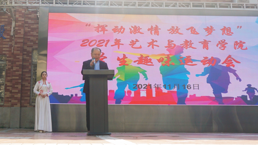 为全面贯彻习近平总书记关于建设体育强国的重要论述,响应教育部的号召,开展阳光体育运动,丰富校园文化生活,艺术与教育学院于20211116日下午在荔湾校区操场成功举办艺术与教育学院首届学生趣味运动会活动。艺术与教育学院党总支副书记叶宜同、副院长张幼晖出席了本次活动,学工办主任谭武主持。