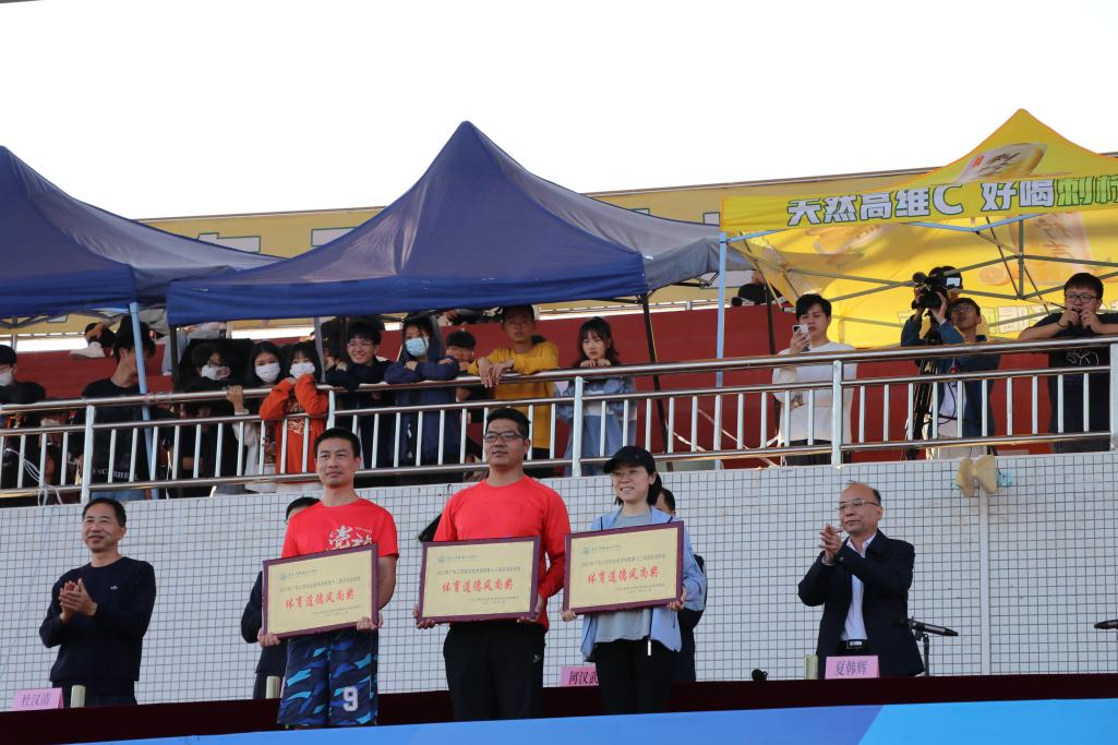 我院师生本着“友谊第一,比赛第二”的态度,经过两天的奋力拼搏,取得了一定的成绩。陈志梅同学在三级跳远决赛中取得了第二名、冯小莉同学在女子800米决赛中获得小组第一名,总体第四名、关芝韵同学在100米决赛中取得了第七名、女子4*100米在决赛中获得第六名的成绩,学院获得了道德风尚奖。
